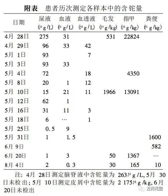 (图表来自陈震阳教授的论文《罕见的1例严重铊中毒情况介绍》)